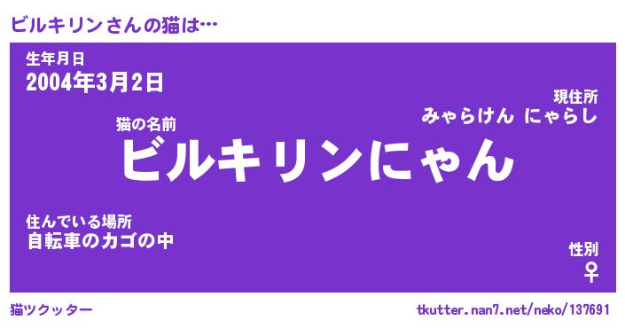 | 男性向けラノベタイトル風あだ名 | 『ビルキリンの憂鬱』 |