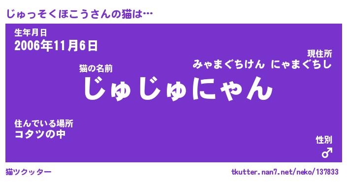 | ツイッター | じゅっそくほこうさんのツイッターID『katatsumuri_nyan』 |