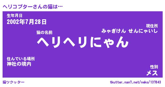 | ポケモン風あだ名 | 『ヘリチュウ』『ヘリコダネ』 |