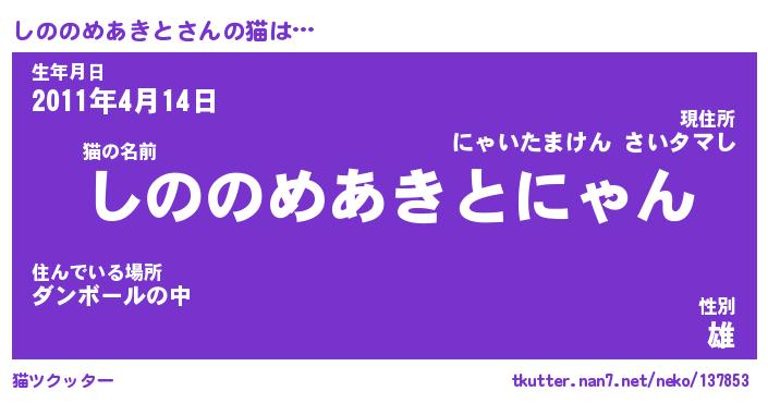 | 男性向けラノベタイトル風あだ名 | 『しののめあきとの憂鬱』 |