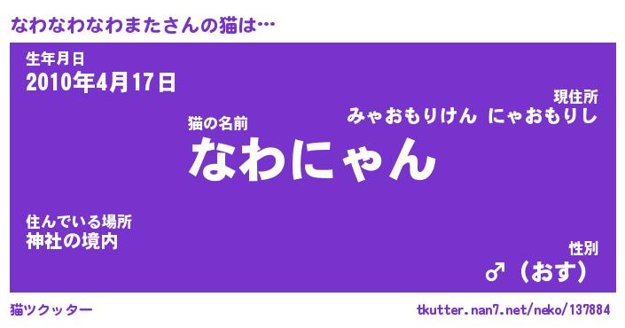 | ポケモン風あだ名 | 『ナワチュウ』『ナワナダネ』 |