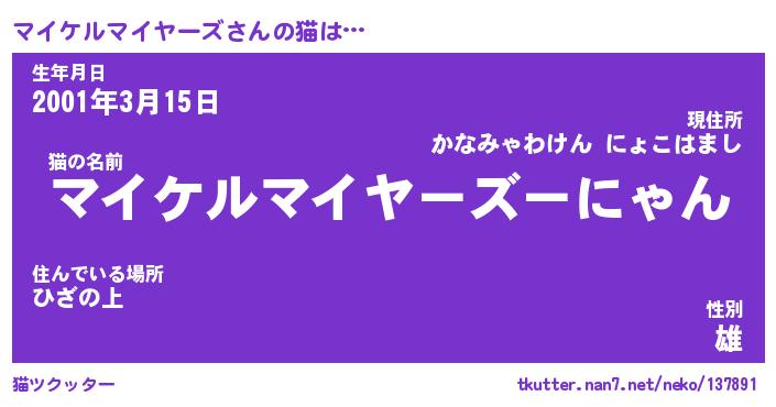 | 欧米人風あだ名 | 『マイケルマイケルマイヤーズ』 |