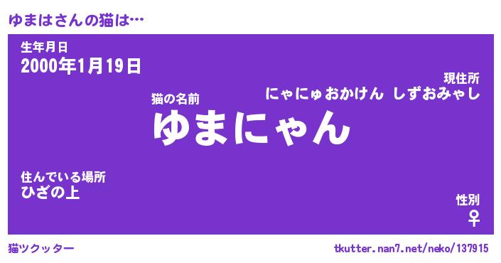 | ファンタジー風あだ名 | 『ユマフェル』『エターナルユマハー』 |