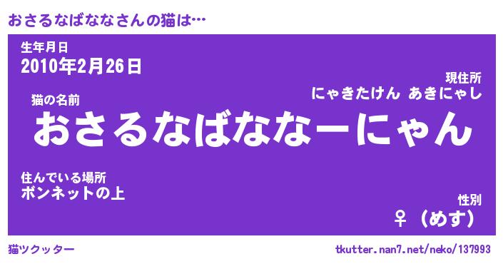 | 生年月日? …「くろねこ」 | 8月01日 10:16 |