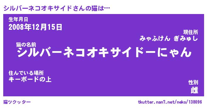 | 伝説のあだ名 | 『封印されし傭兵シルバーネコオキサイド』 |