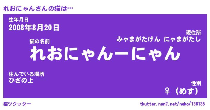 | ツイッター | れおにゃんさんのツイッターID『namakemono_kun』 |