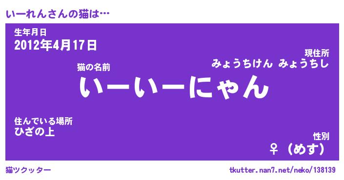 | 意味不明あだ名 | 『ペロリンいーれん』『永久保存いーれん』 |