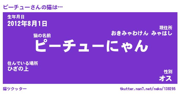 | 女子向けラノベタイトル風あだ名 | 『(仮)ピーチューのやんごとなき事情』 |