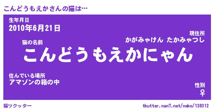 | 肩書あだ名 | 『こんどうもえか御曹司』 |