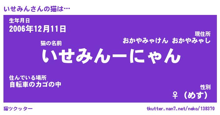 | 意味不明あだ名 | 『ペロリンいせみん』『永久保存いせみん』 |