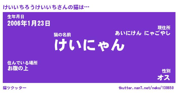 | 2回繰り返すあだ名 | 『けいけい』『けけいい』『ぬれぬれ』 |