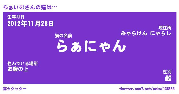 | ファンタジー風あだ名 | 『ラァフェル』『エターナルラァイムー』 |