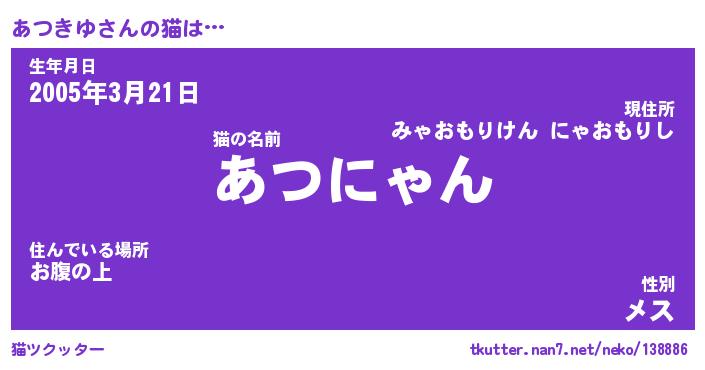 | 意味不明あだ名 | 『ペロリンあつきゆ』『永久保存あつきゆ』 |