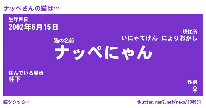 | ファンタジー風あだ名 | 『ナッフェル』『エターナルナッペー』 |