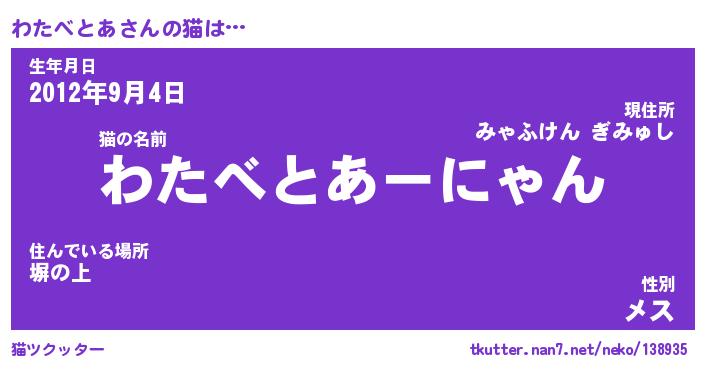| 意味不明あだ名 | 『ペロリンわたべとあ』 |