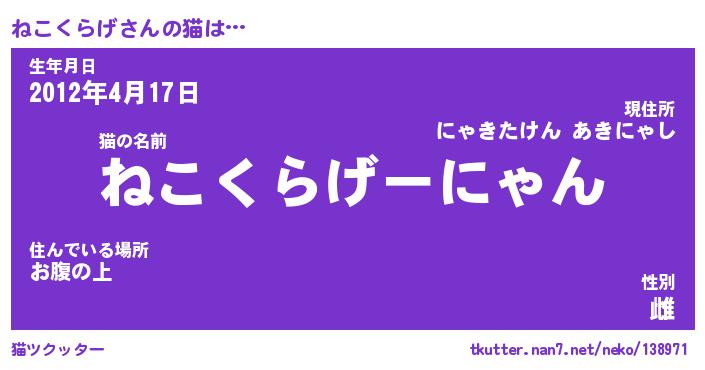 | ファンタジー風あだ名 | 『ネコフェル』『エターナルネコクラゲー』 |