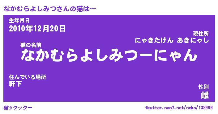 | 生年月日? …「くろねこ」 | 8月01日 10:16 |