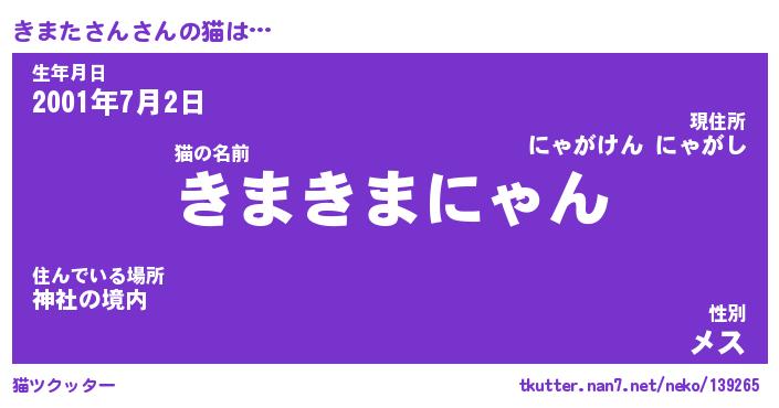 | ツイッター | きまたさんさんのツイッターID『namakemono_nyan』 |