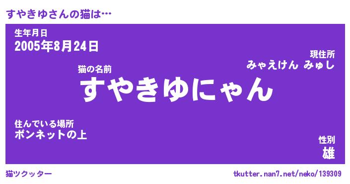 | ファンタジー風あだ名 | 『スヤフェル』『エターナルスヤキユー』 |