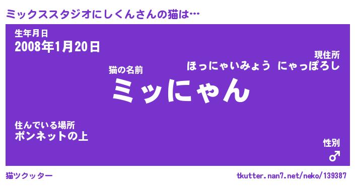 | ツイッター | ミックススタジオにしくんさんのツイッターID『masyumaro_nyan』 |