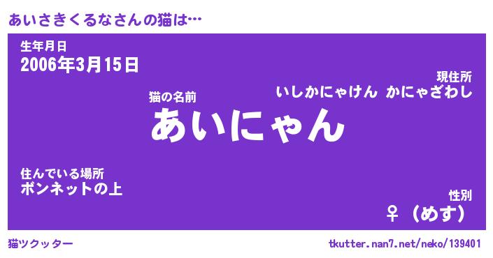 | 生年月日? …「くろねこ」 | 8月01日 10:16 |