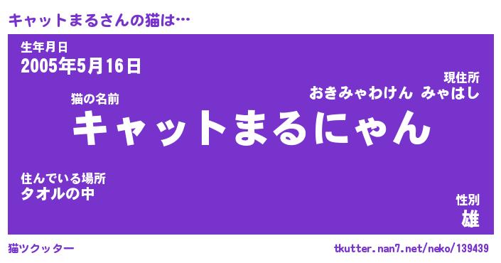 | 男性向けラノベタイトル風あだ名 | 『キャットまるの憂鬱』 |