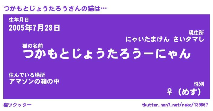 | 番長 | つかもとじょうたろう、またの名を・・・!『マザコンつかもとじょうたろうにゃん』 |