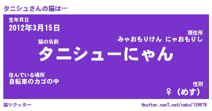 | ポケモン風あだ名 | 『タニチュウ』『タニシダネ』 |