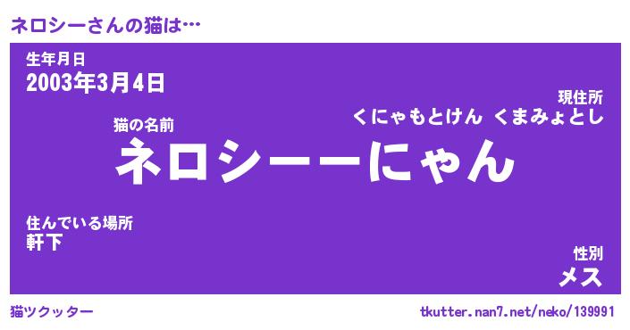 | 2回繰り返すあだ名 | 『ネロネロ』『ネネロロ』『こつこつ』 |