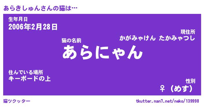 | 生年月日? …「くろねこ」 | 8月01日 10:16 |