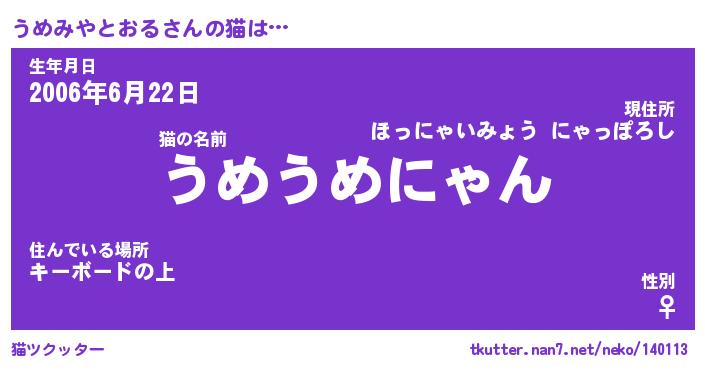 | 2回繰り返すあだ名 | 『うめうめ』『ううめめ』『ぬめぬめ』 |