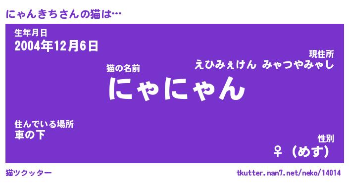 | ファンタジー風あだ名 | 『ニャフェル』『エターナルニャンキチー』 |