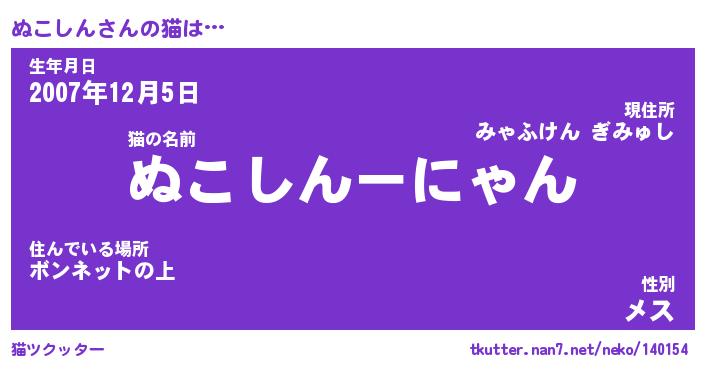 | 欧米人風あだ名 | 『マイケルぬこしん』『ウサインぬこしん』 |