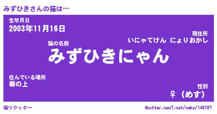 | ファンタジー風あだ名 | 『ミズフェル』『エターナルミズヒキー』 |