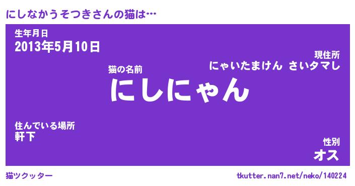 | ポケモン風あだ名 | 『ニシチュウ』『ニシナダネ』 |