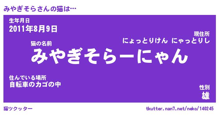 | 2回繰り返すあだ名 | 『みやみや』『みみやや』『ぬれぬれ』 |