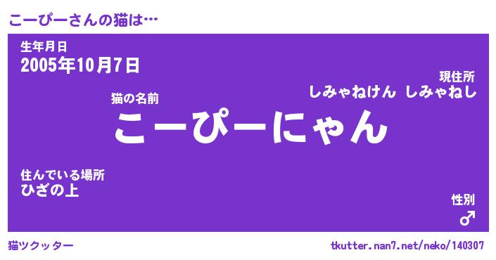 | 男性向けラノベタイトル風あだ名 | 『こーぴーの憂鬱』 |