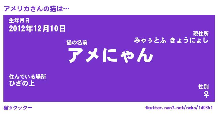 | ポケモン風あだ名 | 『アメチュウ』『アメリダネ』 |