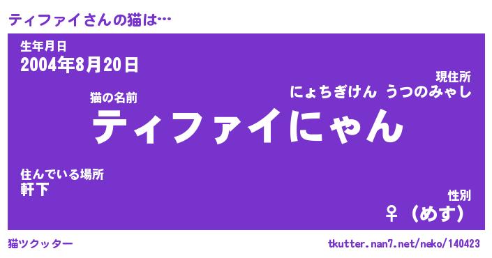 | ツイッター | ティファイさんのツイッターID『kikurage_nyan』 |