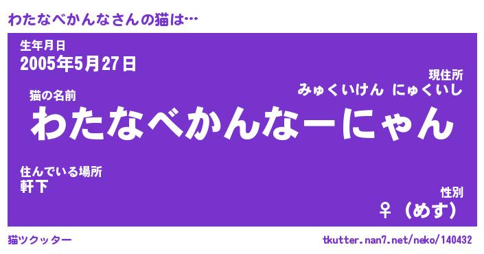 | ポケモン風あだ名 | 『ワタチュウ』『ワタナダネ』 |