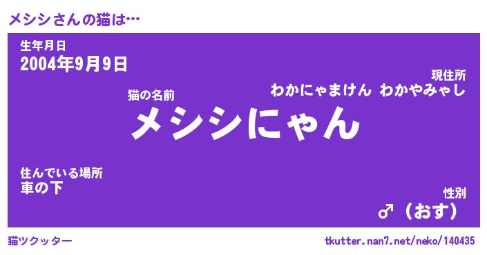 | ポケモン風あだ名 | 『メシチュウ』『メシシダネ』 |