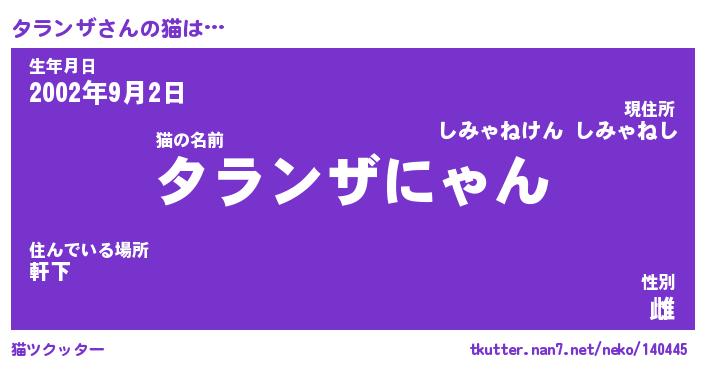 | 男性向けラノベタイトル風あだ名 | 『タランザの憂鬱』 |