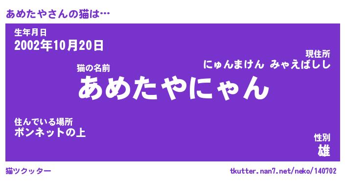 | ファンタジー風あだ名 | 『アメフェル』『エターナルアメタヤー』 |