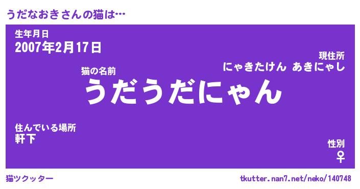 | ポケモン風あだ名 | 『ウダチュウ』『ウダナダネ』 |