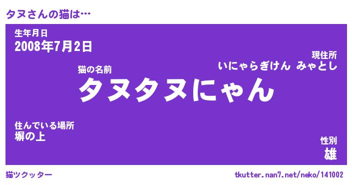 | 2回繰り返すあだ名 | 『タヌタヌ』『タタヌヌ』『ぬらぬら』 |