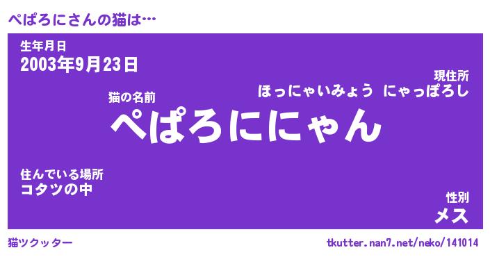| 意味不明あだ名 | 『ペロリンぺぱろに』『永久保存ぺぱろに』 |