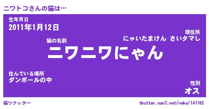 | 2回繰り返すあだ名 | 『ニワニワ』『ニニワワ』『おろおろ』 |