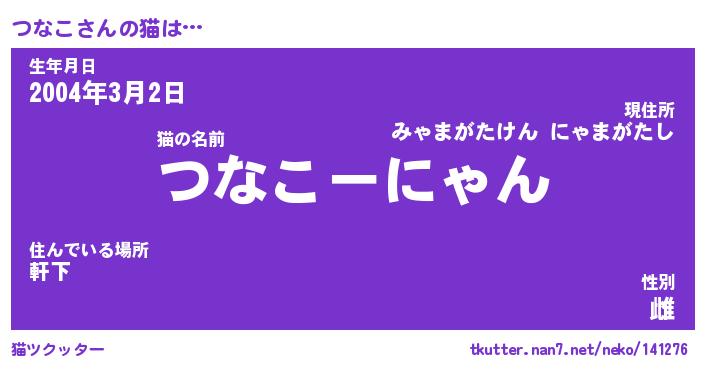 | ファンタジー風あだ名 | 『ツナフェル』『エターナルツナコー』 |