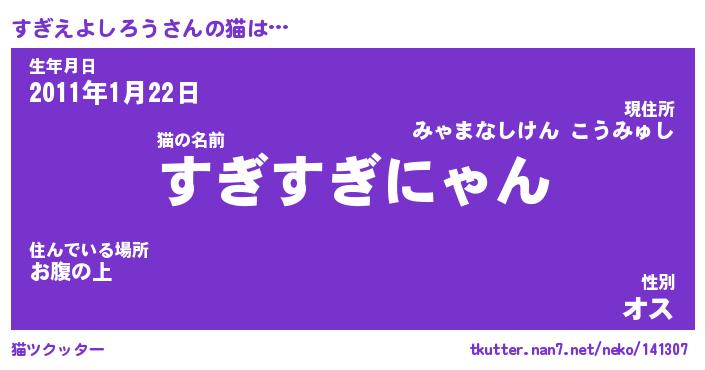 | ヘコむあだ名 | 『すぎにゅー』『酢こんぶ』 |