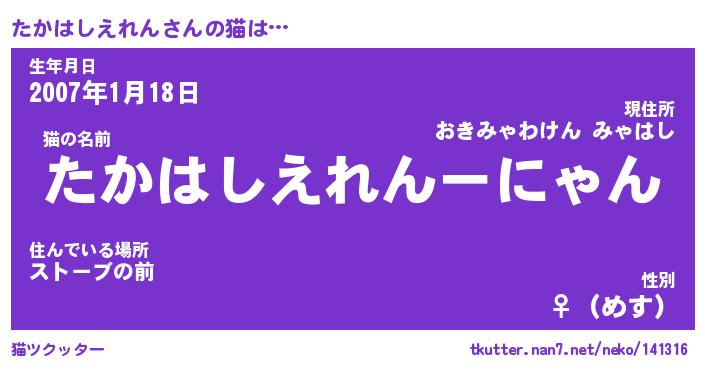 | ツイッター | たかはしえれんさんのツイッターID『namakemono_kun』 |